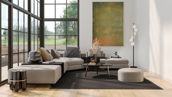 - Keep patterns controlled: use a patterned rug or cushions, but avoid strong patterns on every surface.